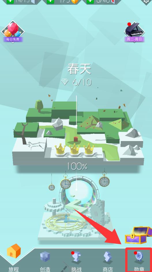 2、点击继续界面里的勋章并进入。
