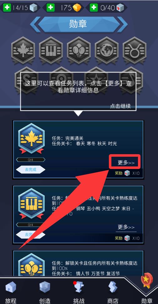 3、点击勋章里的更多会查看怎么获得。