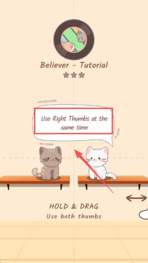3、教程关卡中出现操作提示,同时说明需使用双拇指拖动,辅助完成对应的互动动作。
