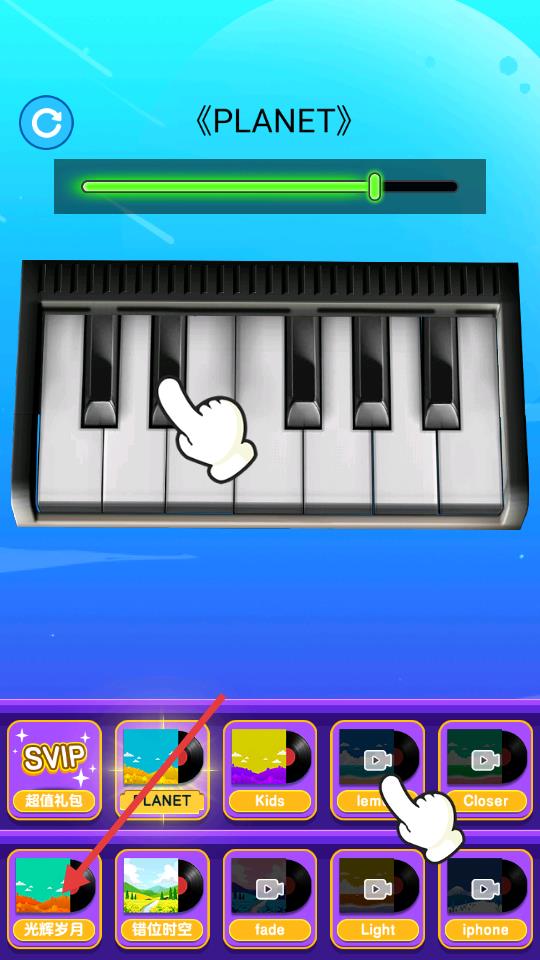 乐器和其他乐器不同的是,按照节奏点击会完成一首完整的音乐