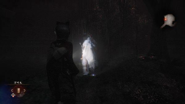 前往仓库,会看到有红蝶飞向仓库的后方。跟随红蝶,会看到仓库后方的两人浮灵,并捡到【画有蝴蝶的日记 九】