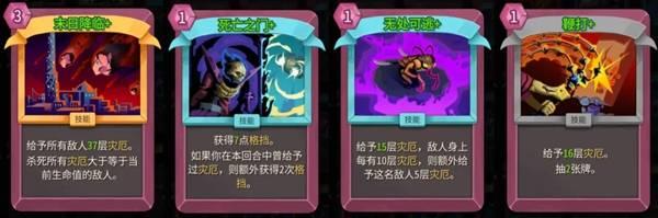【末日降临 】本身是一张过渡极强的卡,能够瞬时出伤的灾厄,37点群伤足以秒杀绝大多数小怪。到后期还能帮我们解决“明明叠了几百层灾厄但还是硬要吃一刀大的”的问题。