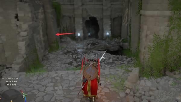 进入箭头位置的洞(图中被柱子挡住了)