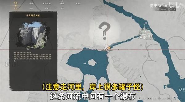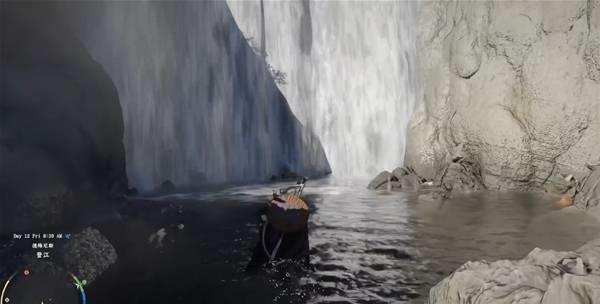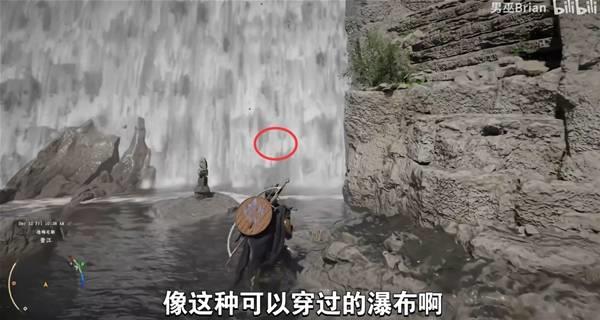 走到瀑布附近,使用刺击攻击穿过去。