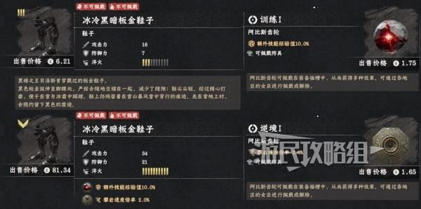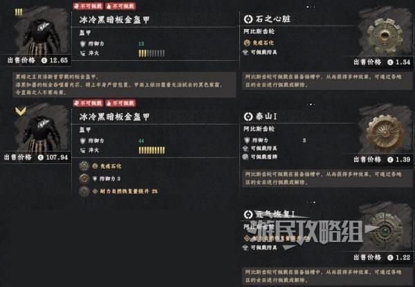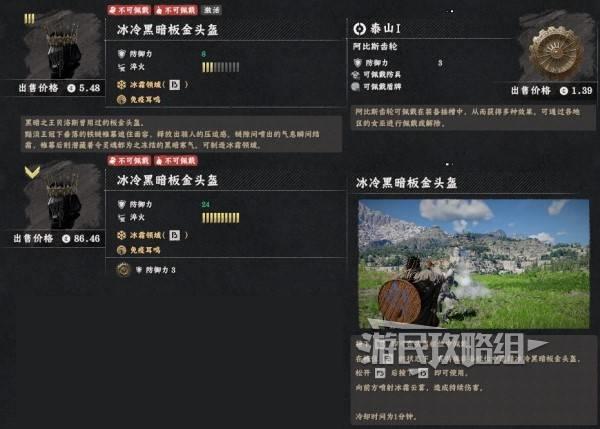 冰冷黑暗板金套装中的四件在前期无需战斗就能获得,其属性比埃尔南德铁匠铺出售的所有装备都要好,而且不花钱。但需要注意此套装所有部件都位于埃尔南德西部的雪山,防寒装备非必需,但环境恶劣、路途遥远,预计需要大量的攀爬、徒步和骑马,建议做好准备再前往。