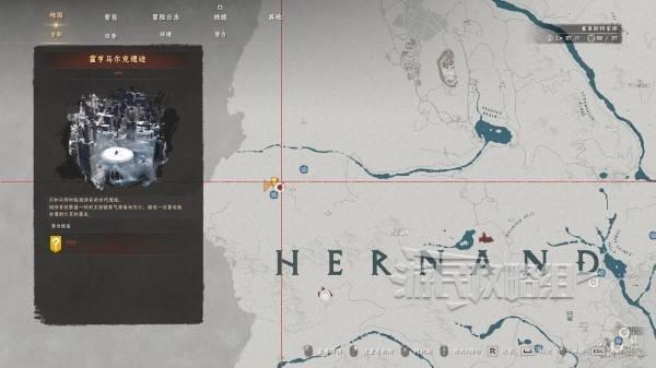 位于埃尔南德区域西边的【霍亨马尔克遗迹】中,参考下方地图,到达目标位置后找到遗迹的一个房顶,房顶对应的房间被栅栏挡住了,在房顶上有一块特殊的石板,下蹲按劲法(L3 R3/C 鼠标中键)即可打开石板落到下方房间内,开启宝箱即可获得。