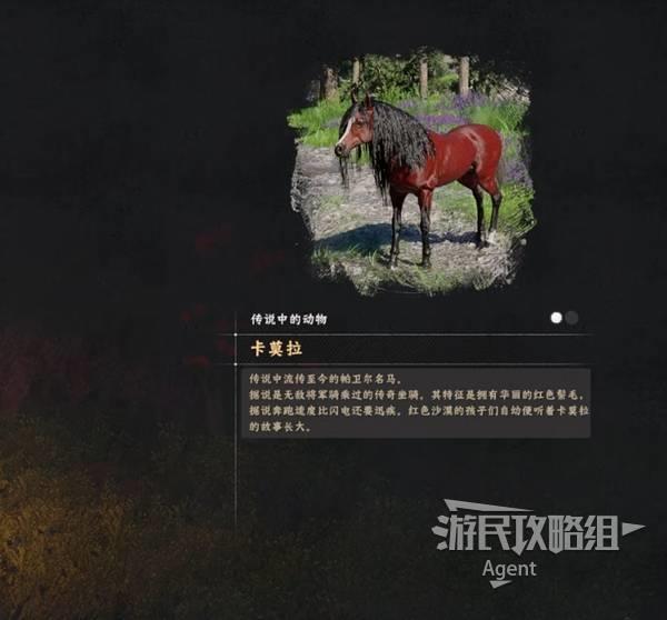 在大地图最东面(德梅尼斯区域东面),下图位置有棵红色的大树,周围草地都是花,在这里找到红色的“赤兔马”卡莫拉。