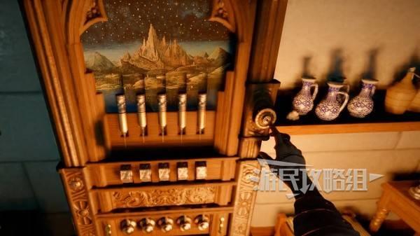 佩伦-斯特伦大宅(风景金属柱)保险箱解法旋转旋钮打开保险箱,建议用键盘操作,将每个金属柱中间的分界线与画底部的线对齐,旋转盘调整的是上方金属柱的重量,向上转是更重,向下转是更轻,每次调整都需要按下最右侧的按钮才能检验当前的调整结果。