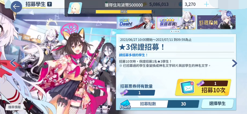 该游戏最重要的就是抽取高星角色和培养角色,建议将大部分的“青辉石”用在这方面。不过在抽取角色之前,建议攒够可以连续抽取10次角色的“青辉石”,抽取十次角色,保证可以获得一名三星的学生。可以用“青辉石”恢复体力,体力是展开战斗阶段的入门槛,其实游戏中的装备不推荐用充值的金额购买,一些关卡的奖励就是这些装备,完全可以0氪获取。