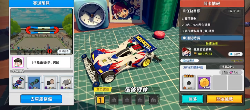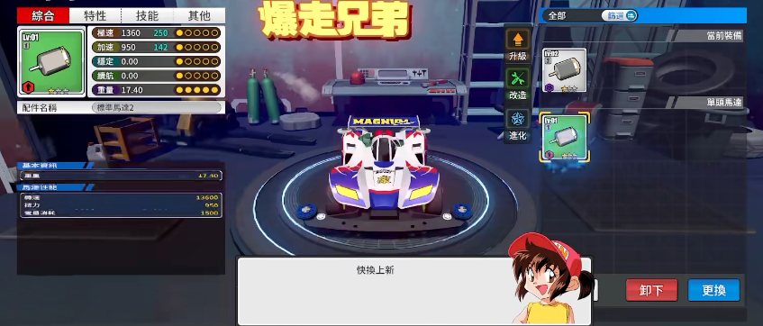 游戏在引导环节非常贴心的选取了原作的女主佐上纯来担任玩家的导师,在她的引导过程中,玩家不仅可以快速认识到四驱车的应用,也可以借由她的关系网来结识原作中的各个四驱车手,在与其他车手结识的过程中,你们会建立各种各样的羁绊,并展开一场场友好的切磋。