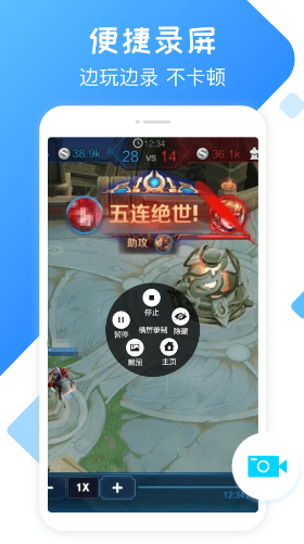 这款软件可以为我们提供直接录屏的功能,能够录制手机上超清的画面,还能听到麦克风的声音,无论是视频通话、直播节目还是我们游戏的体验过程,都是可以轻松完成录制的,分享给更多的人看见,还拥有暂停以及恢复录制等多种功能,直接开启摄像头。在整个录制过程中直接隐藏悬浮标,让大家的录制可以变得更加专业哦。