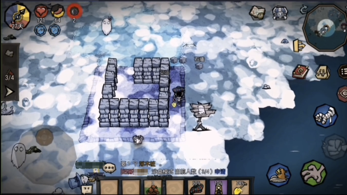 第二个幽灵则是在一旁的石头墙那边,石头墙是残缺的,玩家想要找到幽灵就需要先将石头墙补好。