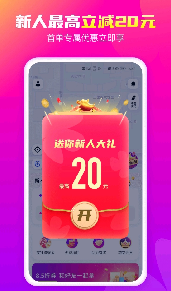 车型选择多、可一建同时呼叫多个车辆、为用户提供安全、实用、价格便宜的出行应用。平台新用户可享受首单打车减20元车费的优惠;通过该应用完成出行的次数越多,获得的福利也越多,让出行省钱又赚钱;一口价模式,让用户的远途搭乘更加划算;安全官功能,支持用户一键分享行程、录视频和报警,保障自身的各项安全;用户推荐给其他好友,还能获得一份独有的大礼;多付赔模式,帮助用户解决各种异常的费用,让乘车更有保障、避免多付不必要的车费。