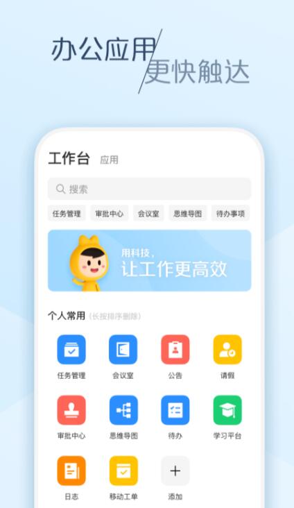 这个应用的界面设计一目了然,常用的项目都被集中在了一起,免去寻找的烦扰,让操作变得更快捷。企业可以将一些审批移到软件内,便于管理者去处理,同一个办公室的员工,会被划分到一个群内,上级只需在群里面发布一个任务,下级就能清楚下一阶段要干什么了。在app当中直接语音沟通,不仅清晰,还很方便。