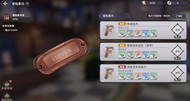 之后玩家可以打开委托面板,在这里可以看到有多种不一样的委托,玩家可以随意的去挑选一个,每一个不同的委托都会有对应的内容根据个人的实际情况就可以挑选。在挑选之后还需要消耗对应的冒险委托券,可如果玩家可以顺利的完成任务,就能有效得到很多的奖励。