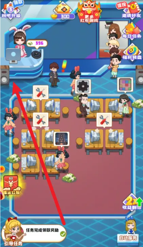 第一步就是进入游戏界面,找到左下角的网吧管理功能点击进入。