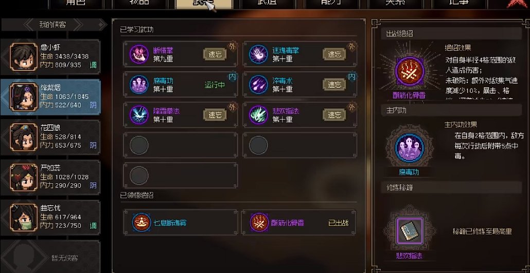 当然了游戏当中也不只有这一个同伴,游戏中是有许许多多的队伍搭配方式让大家探索的,以上就是小编为大家带来的大侠立志传花四娘任务攻略解读文章的全部内容了,希望能为大家带来帮助。
