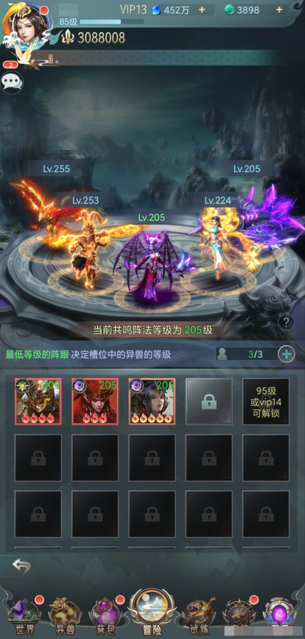 在封魔种族试炼中,玩家需要每个种族都有五个异兽,可以优先培养每个种族的三个异兽,然后用共鸣法阵来补充其他两个。在九重天劫中,玩家需要根据不同的关卡,选择不同的属性和职业的异兽,可以用共鸣法阵来调整自己的阵容,达到三星通关的目标。