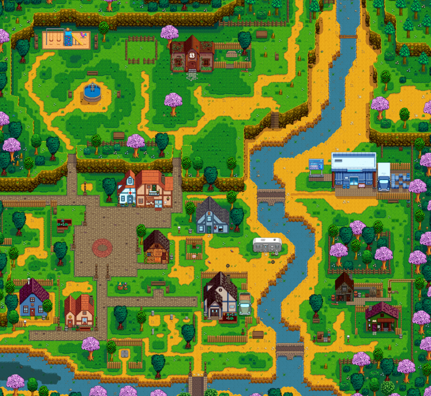 特色之一是与村民的互动。你可以在不同的地点、时间、日期找到他们,给他们送礼物、聊天、帮忙、参加节日等,来增进你们的友谊或爱情。每个村民都有自己的喜好、性格、日程和故事,你可以通过不断了解他们来解锁更多的对话和事件。你甚至可以与某些村民结婚,生孩子,一起经营农场。