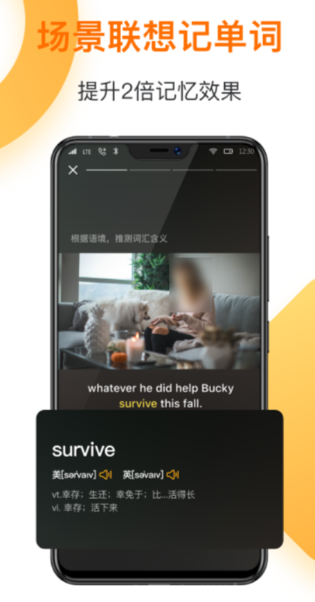 主要就是通过跟读点读等方式让我们快速完成单词的记忆,软件中的跟读模式还可以采集我们的声音,从而进行发音纠正,更是带有一些利用场景联想方式的快速记忆法。