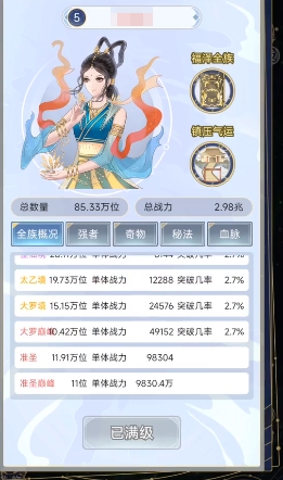 其实圣人是游戏当中一个前期的等级,大家要是想要达到这个阶段也是不难的,前期基本只要大家挂机就可以不断进行升级,而且想要突破圣人的话,是只有通过战力来进行突破的,目前在游戏中大家想要突破圣人,首先在种族上面大家一定要将每一个种族都培养好。