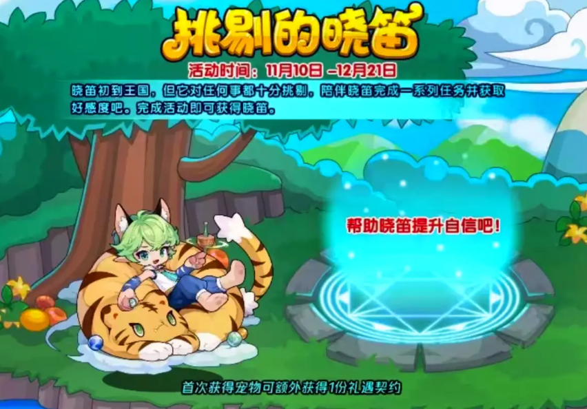 同时游戏中还更新了本周活动,【挑剔的晓笛】这个活动主要是需要大家在游戏中完成一些任务来获得晓笛的好感度,完成任务后就可以免费获得晓笛了,活动时间还比较长,大家可以慢慢做,任务地点在【魔法学院】;