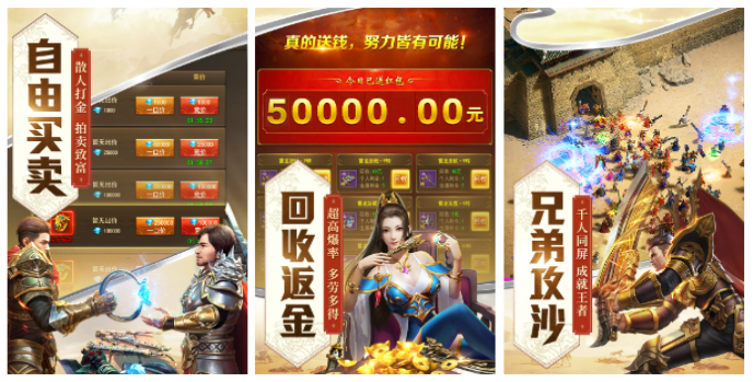 这是一款高爆真传奇游戏,充值全靠打。在保留经典传奇的自由交易、跨服沙城战、行会战等核心玩法的基础上,进行了适应现代玩家需求的改进。玩家们可以在游戏中自由交易物品和装备,建立自己的行会并与其他行会进行激烈的战斗,同时还能参与跨服沙城战,体验攻城和防守的刺激。游戏中的打BOSS爆充值卡玩法让玩家可以通过击败强大的BOSS来获得充值卡,从而无需氪金也能获取游戏内的充值福利。这种玩法的设定既激励了玩家进行战斗和挑战,又使得游戏更加公平和公正。
