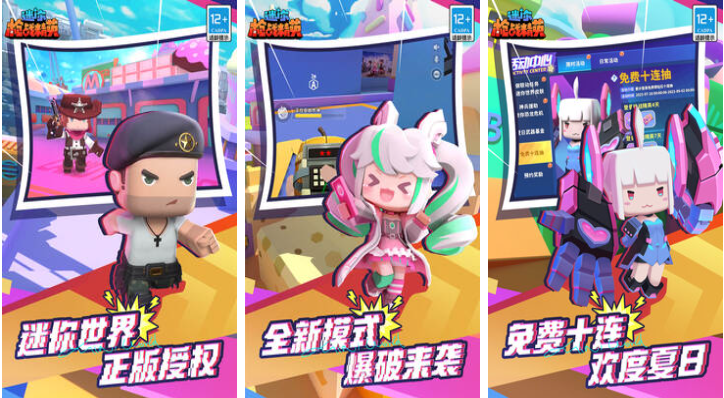 本作是款经过了迷你世界游戏授权的3D百人竞技类游戏,萌版卡通的角色和像素方块的背景令人眼前一亮,全新的竞技系统和舒适的操作手感让玩家难以忘怀,自由抽取武器的良性机制让玩家乐在其中,卡通向的背景与惊险刺激的吃鸡过程形成了强烈反差,这款内容非常硬核的迷你枪战游戏值得玩家下载尝试。