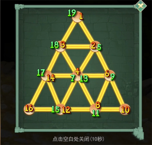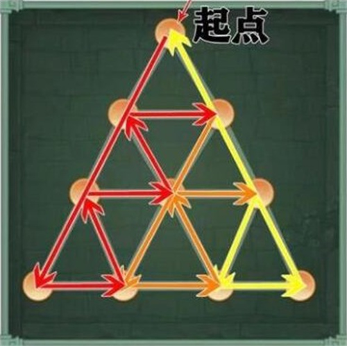 第五个宝箱在灵阴山的第三层,玩家需要进入另一个山洞,然后在里面找到一个金色的宝箱,这个宝箱的一笔画比较简单,只需要按照图示的顺序画完就可以开启宝箱了。