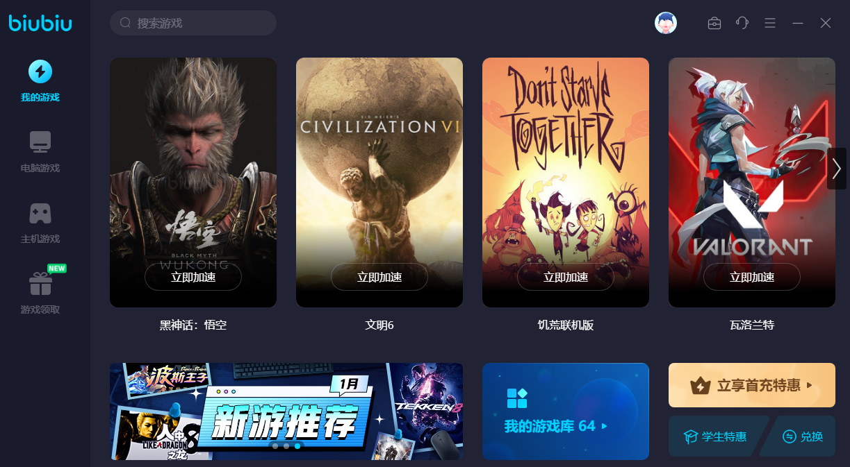 特别是现在biubiu加速器的福利非常多,新用户登录后可马上获得长达24H的免费加速体验。让你抢先体验一波加速的快感,如果还想要继续的话,只要输入【biubiu不卡顿】这个口令,即可兑换免费三天加速啦!这样你就会慢慢发现这个加速器更多的优点啦!不仅能够快速加载商店,还可以畅快加速各种游戏,让你成为新的游戏达人!