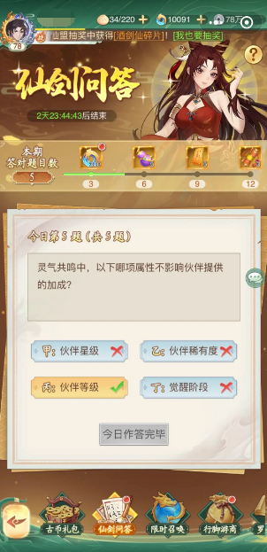 问题:灵魂共鸣之中,以下哪项不影响伙伴的加成?答案:星级。