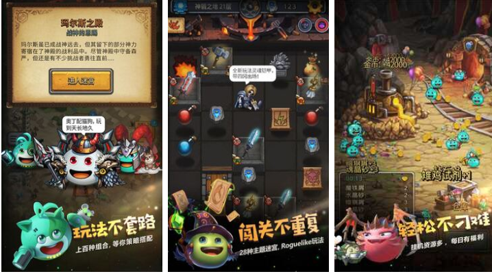 不思议迷宫是款画面极简又复古的竖屏魔幻题材肉鸽游戏,得益于随机的关卡和场景塑造,让玩家每次进入游戏都能获得不同的感觉,没有任何套路的玩法和较高的随机性让本作名声大噪,更有一些随机触发的任务和剧情期待玩家们挑战,轻松简单的控制方式和幽默搞笑的游戏氛围让这款佳作脱颖而出。