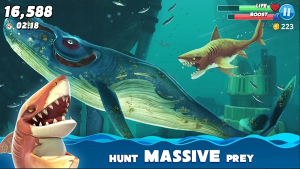 你将扮演一条鲨鱼,游走在浩瀚的海域,捕食各种鱼类,甚至人类。你的鲨鱼可以不断进化,变得更大更强,但是你也要注意,海洋中并不是只有你一个鲨鱼,还有其他的竞争者,他们可能比你更凶猛,更狡猾,如果你不小心,就会成为他们的盘中餐。所以,你要不断提升你的鲨鱼的能力,解锁更多的鲨鱼种类,才能在这个充满危险和挑战的海洋中生存下去。