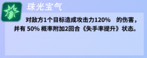 阿莱莎的技能比较特殊,珠光宝气:阿莱莎向目标区域发射一枚珠子,对范围内的敌人造成伤害,并使其进入恋爱状态,持续一段时间。恋爱状态的敌人会有一个失手率提升debuff,对boss有奇效。