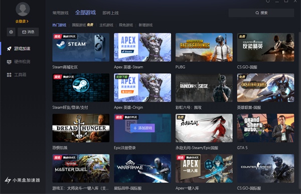 该加速器能够适用的游戏数量非常多,都可以体验一键加速,种类齐全数量多是很多玩家选择小黑盒加速器的原因,轻轻松松的点击就能体验到流畅的加速,不管是国内游戏还是国外游戏都可以轻松搞定注册与登录。