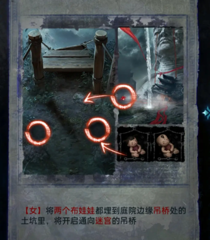 根据上面的线索,一旦在点燃蜡烛可以拿到布娃娃,把布娃娃埋放在土坑中,将迅速的开启吊桥,接着可以眺望。来到迷宫的箱子处,可以获得里面的鹦踹木雕和古币,只是把罗汉像摆放在宝座上,能得到寺庙精雕,重新回到废墟,就可以得到对应的线索,根据线索可以进入到古墓。