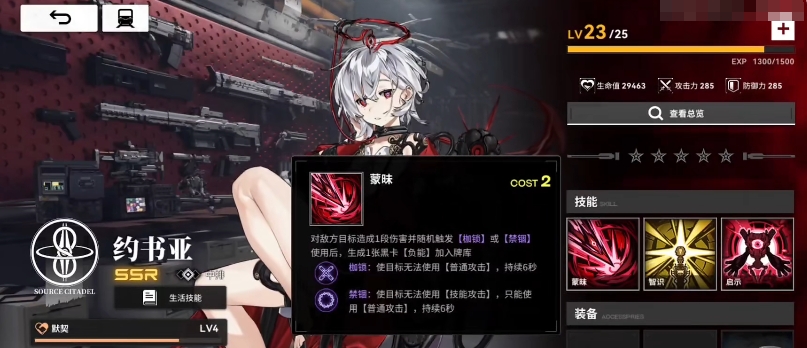 约书亚:这是一个坦度很高的中排角色,生命与防御数值首屈一指,技能可以附加强力的控制,包含枷锁以及禁锢,两种效果分别限制敌人的普攻与技能施放,大大削弱敌人的进攻能力。