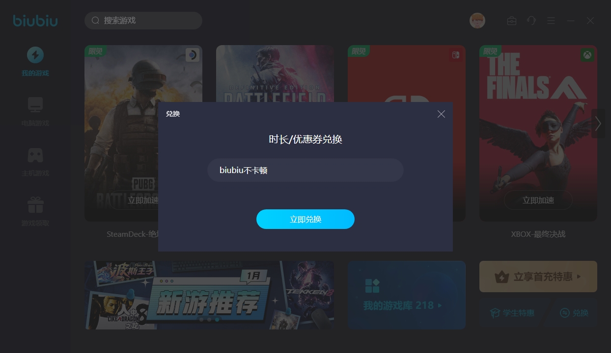 此外该工具的突出功能也很多,比如针对不同端口的朋友也能去实现同步的加速,就单单这点,市面上很多加速工具都无法满足,同时新用户在注册成功以后就能享受到24h的免费加速体验,更是有着3天的免费加速福利等待大家去领取,具体的操作方法就是在首页兑换界面去输入【biubiu不卡顿】来领取即可,不过需要大家注意的是到时候得小写输入哦。
