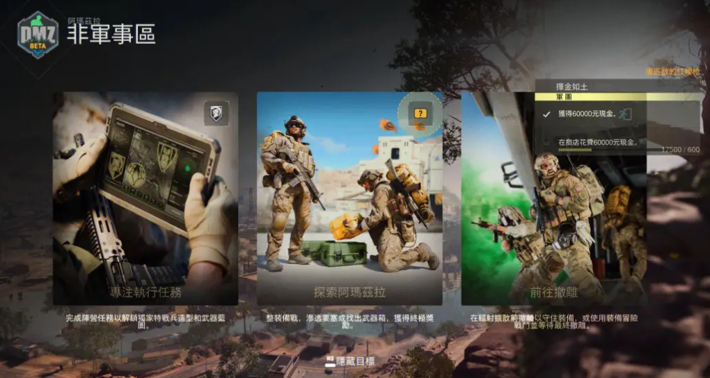 使命召唤战区手游是主打的战区模式,即吃鸡玩法。这个模式可以选择单人、双人或四人组队,跳伞降落到一个庞大的地图上,寻找武器、装备和资源,与其他玩家展开激烈的对抗,最后生存下来的玩家或队伍就是胜利者。而且大地图设计的非常用心,是由使命召唤系列中的多个经典地图拼接而成的,包括了城市、机场、军事基地、沙漠等多种场景,每个场景都极尽还原代入感极强。