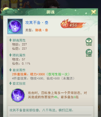后期的时候可以根据具体的情况选择其他的御魂进行搭配,如果在整个战斗过程中玩家的角色等级都比较低,并且资源都有限的话,那么玩家们可以考虑将一些带有防御属性和生命值的御魂佩戴给独孤剑圣,因为独孤剑圣本身的坦度也可以,所以可以让他在前排充当防御型的角色抵挡一部分的伤害,并且他本身自身就附带无视防御百分比加成的御魂 。