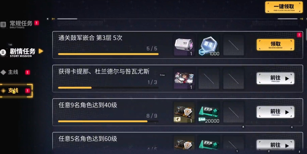 而每日副本中想要更多资源的大家还可以关注资源采集,这个玩法是危险程度不高的,但是需要耗费不少的时间,其次就是跃升行动,大家需要进行战斗,如果是想要给角色搭配各类芯片的话,大家还可以参与芯片嵌合的副本,在赢得胜利之后就可以在上面获取足够的芯片,战斗难度越高的关卡,大家获取的芯片等级就越高,所以建议大家有足够战力的时候多去挑战难度更高一些的关卡,当然大家在副本中拿到足够资源的时候也不要忘记上面的主线,只有将主线关卡一直往前推才可以解锁更多的玩法哦。