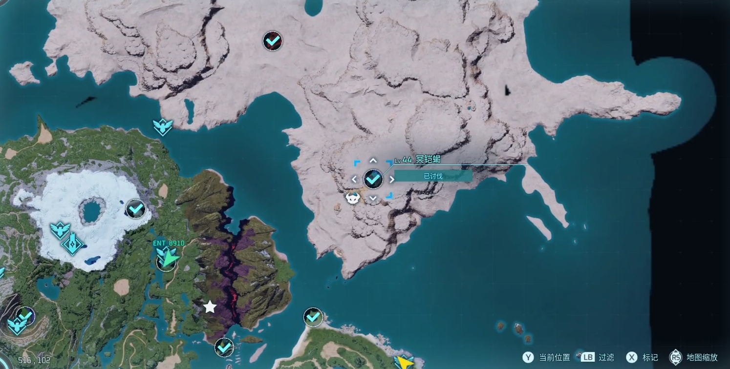 冥铠蝎也可以直接在初始地图的区域中找到,不过它属于世界boss级别的存在,所以并没有特别广泛的分布,建议大家先传送到地图中间的岛屿,然后前往(516,102)这个坐标去寻找它的身影。