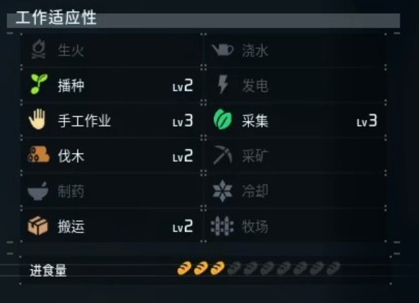 它的特点是跑过的地面会变得更加肥沃(种植园加成?),草木也会长得很茂盛(浆果加成?)。这对于玩家的农业生产是非常有利的,可以提高作物的产量和质量。不知是设计方的恶趣味还是尚未解锁,小编暂时没有发现这些特质。毕竟本作都能够RPG发射企丸丸,应该没有什么是不能做的。踏春兔的打工技能强度是手工-3、搬运-2、采集-3、播种-2、伐木-2,不愧为人型帕鲁,打工能力就是强!非常强力值得培养。