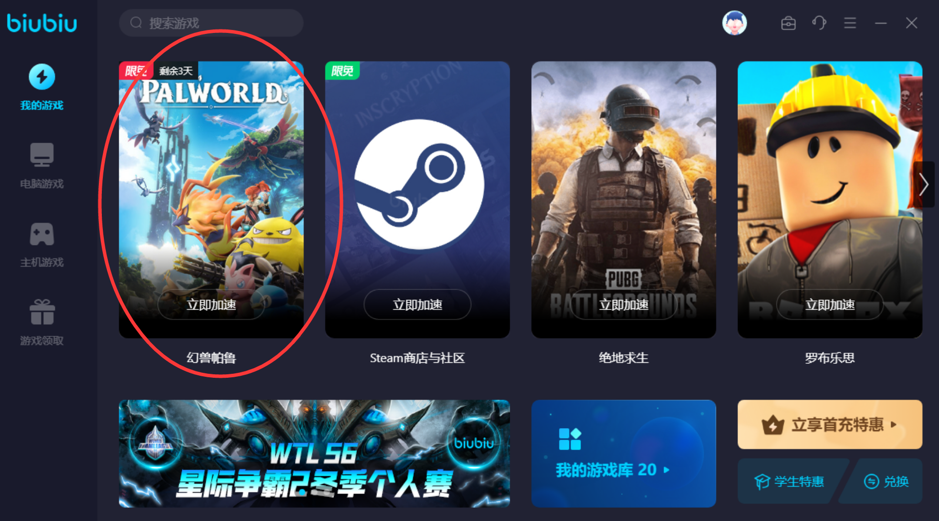 连理龙是一种比较容易捕捉的幻兽,它的活动范围很大,数量也很多,而且不会主动攻击玩家。但是联机模式等级低的话还是对手法、网速有很高要求的。但是大家不用担心,小编这就来分享一个最近专门和幻兽帕鲁定点免费加速的加速器——biubiu。而且小编还会送大家一个免费加时码“biubiu001”,再领三天限免时长。同时pc端的小伙伴们在第一次注册biubiu的时候还能再领到一个24h的免费加速包。大家快来试试吧!