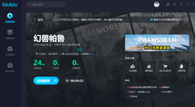 建议玩家在一开始时可以选择自己进入到山洞副本中,在山洞副本中就会有许多的铁矿,全部都可以固定刷新,一下子就可以带出几百个来。有很多的玩家都会反映,在挖矿的过程中总容易会出现卡顿的现象,此时不妨就选择下载biubiu加速器。biubiu如今会有重磅活动,针对幻兽帕鲁游戏可以加速。新用户在注册之后,马上就可以得到24小时加速时长,然后再额外搭配使用【biubiu001】,就可以得到三天免费加速时长,这就说明总共是96个小时,而且这个兑换码大家都可以使用,不限制新用户或者老用户。