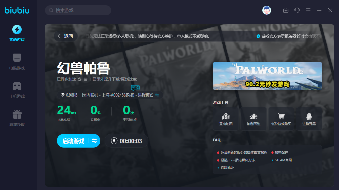有一部分玩家在游戏中总容易出现卡顿。影响玩游戏的心情,例如在抓捕熔岩兽时,一旦遇到卡顿,很可能会错失良机。可以在上下载加速器,biubiu可以有效针对幻兽帕鲁进行加速,新用户在注册之后就可以得到24小时加速时长,另外还可以搭配兑换码【biubiu001】使用。在搭配兑换码之后就可以额外得到三天的免费加速时长,总共是96个小时,无论是刚刚注册的用户还是老用户都可以使用兑换码。