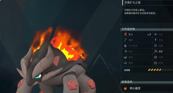 熔岩兽还会掉落一些喷火器官,另外还有许多的技能,其中就包括贪食矿石之兽,可以直接骑在野兽的背上移动,在骑上野兽背部时就能拥有较出色的破坏矿石效果,可以有机会得到更多的矿石。