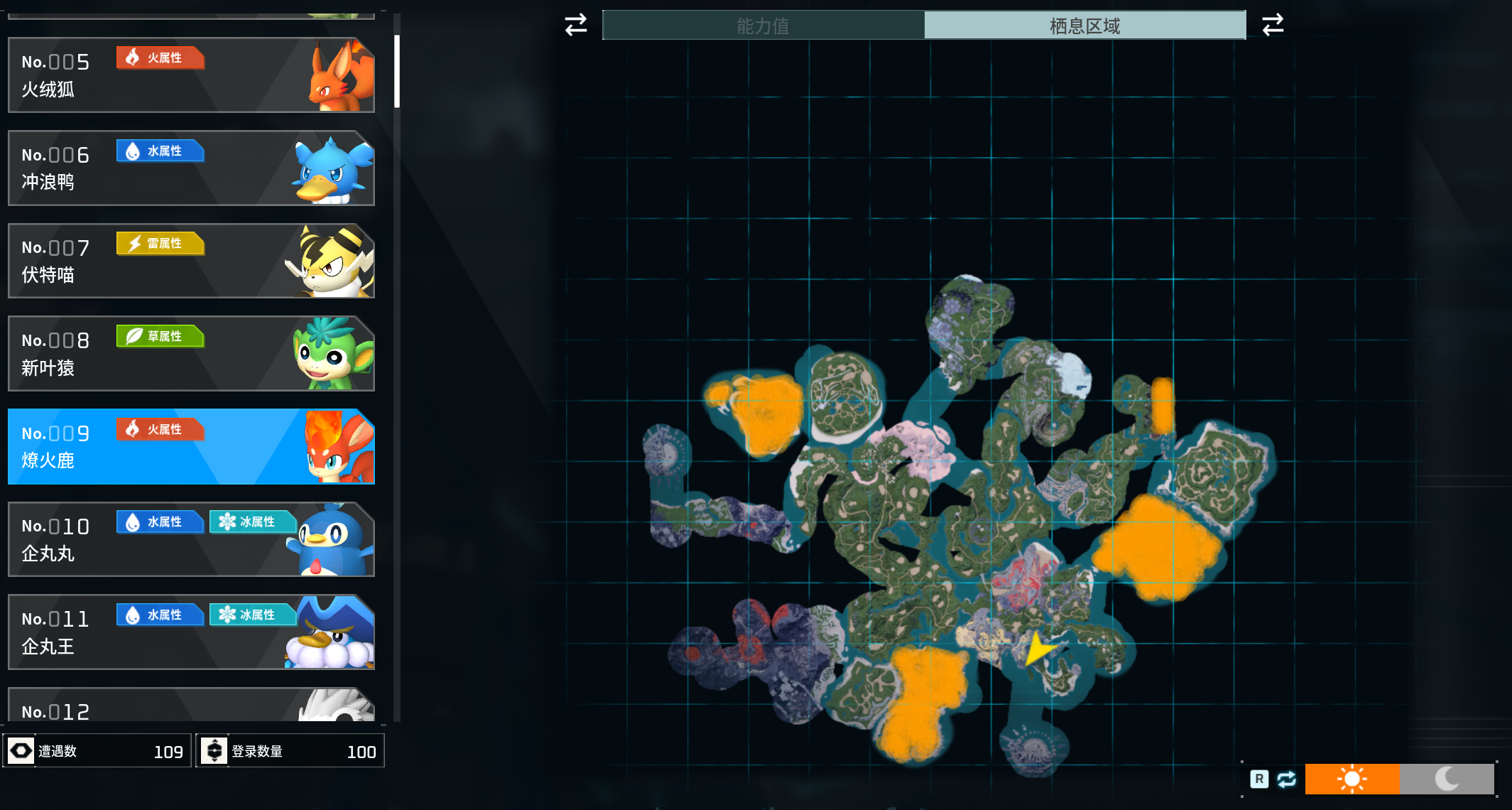 捕捉燎火鹿需要前往阿斯特拉森林,燎火鹿的分布区域是森林的南部、西部和东部,你可以在地图上看到蓝色的标记。燎火鹿只在夜晚出现,所以你需要等到天黑后再去寻找它们,普通帕鲁球基本捉不到,最起码二级球开始,推荐直接上三级球。它们可以喷射出炙热的火焰,对你和你的幻兽造成伤害。你可以带上一些水属性的幻兽,比如水龙或者水狗,来对抗燎火鹿,利用属性相克的优势。