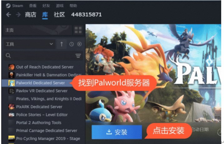 安装并开启【Palworld Dedicated Server】流程参考以下步骤
