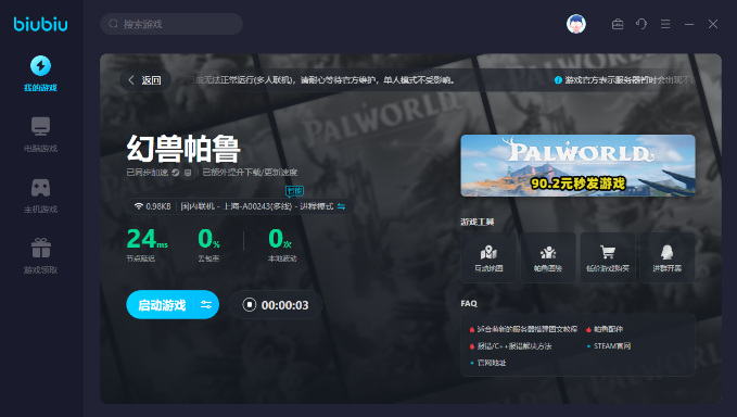 只是当玩家在抓取时总容易会出现卡顿的现象,一旦卡顿就会影响到抓取的几率,建议直接选择下载加速器。biubiu如今针对幻兽帕鲁游戏还会有全新的加速活动,比如新用户在注册之后就可以拥有24小时加速时长,另外还可以搭配兑换码【biubiu001】,如果放在一起使用可以额外的得到三天免费加速时长,一共是96个小时,而这一个兑换码新老用户全部都可以使用。